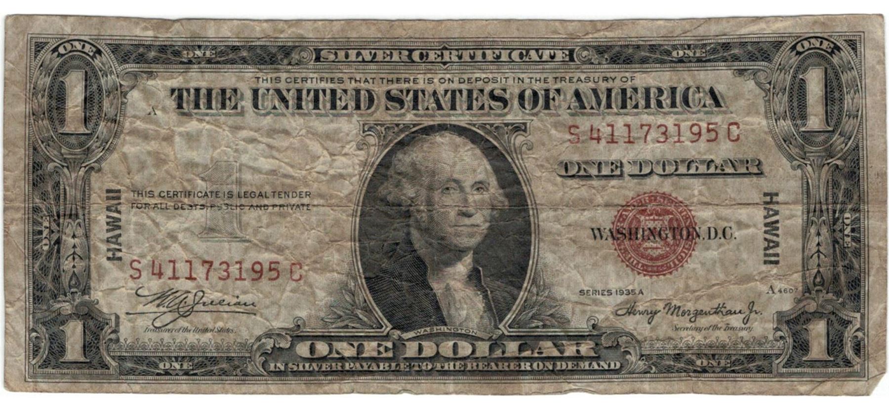 1935 $1 Hawaii Federal Reserve Note Currency.
