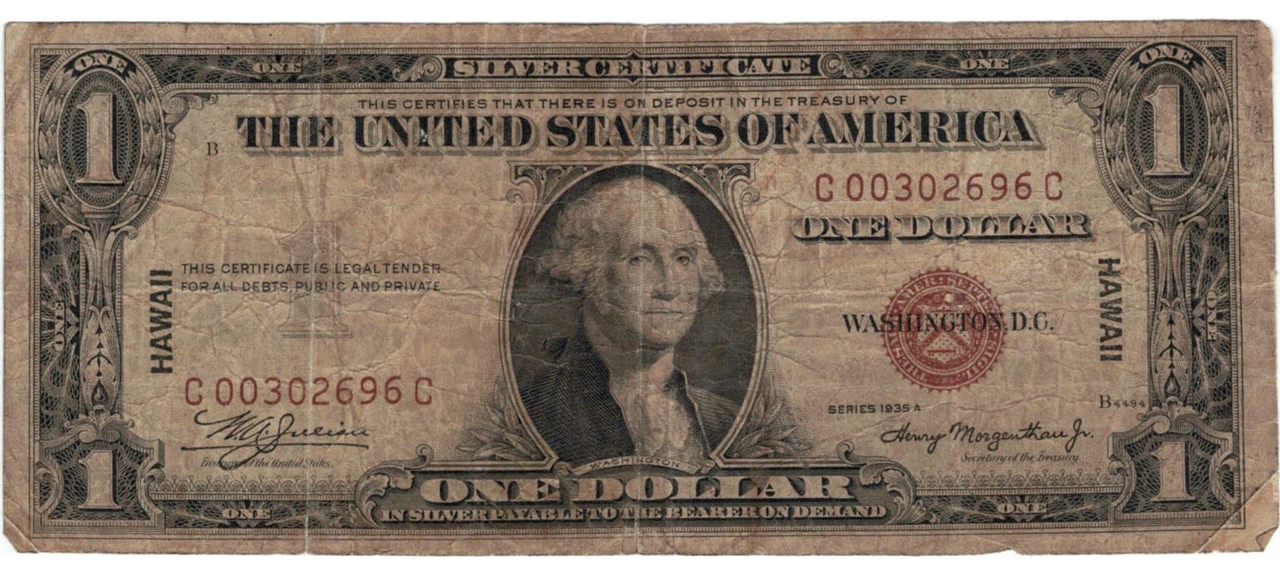 1935 $1 Hawaii Federal Reserve Note Currency.