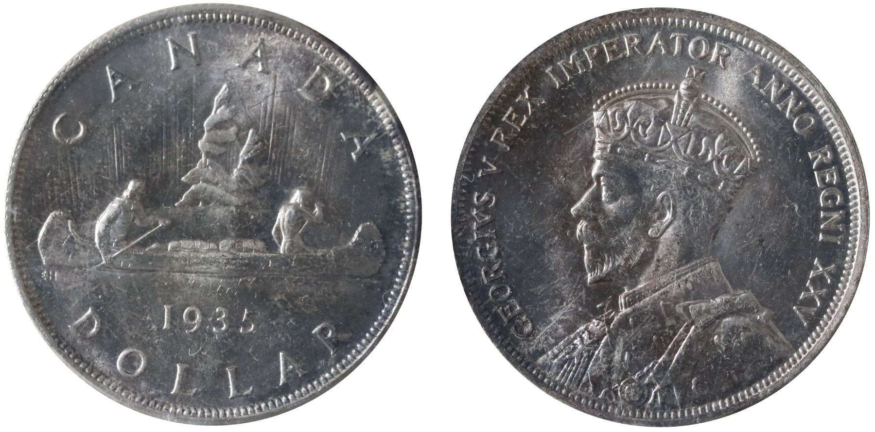 1935 $1 ICCS Choice Mint State-64. Light toning in fields.