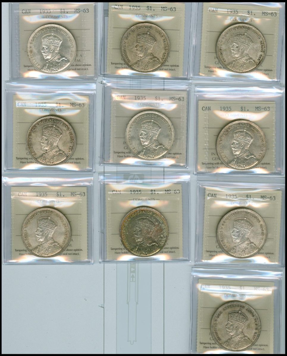1935 $1 ICCS MS63. Lot of 10 coins, all problem free.