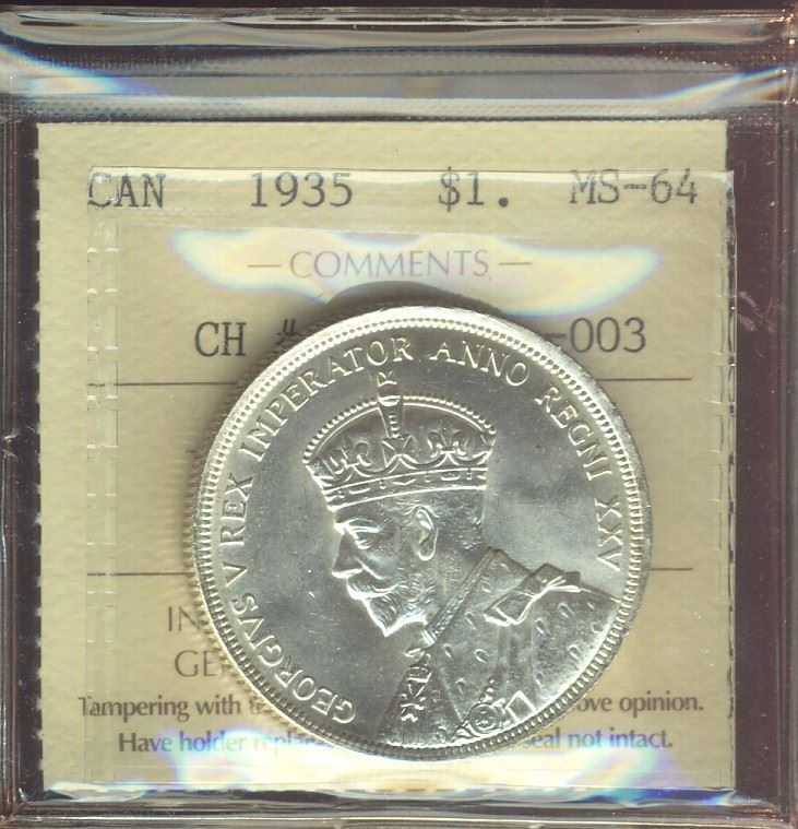1935 $1 ICCS MS64. CH# 1935 Rev-003. Full crisp white issue.