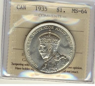 1935 $1 ICCS MS64. Lustrous white issue.