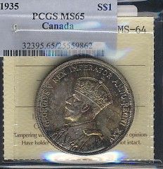 1935 $1 ICCS MS64 / PCGS MS65. Attractive rainbow tones.