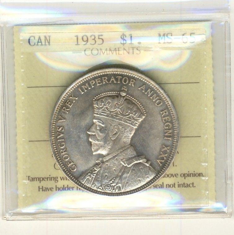 1935 $1 ICCS MS65. Even shades of gold and green.