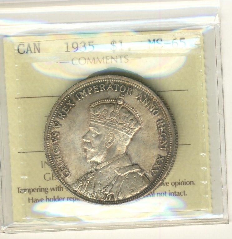 1935 $1 ICCS MS65. Light Green rim tones and shades of gold over strong lustre.