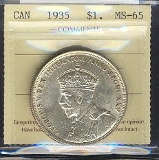 1935 $1 ICCS MS65. Strong lustre with light gold shade(XJO351).