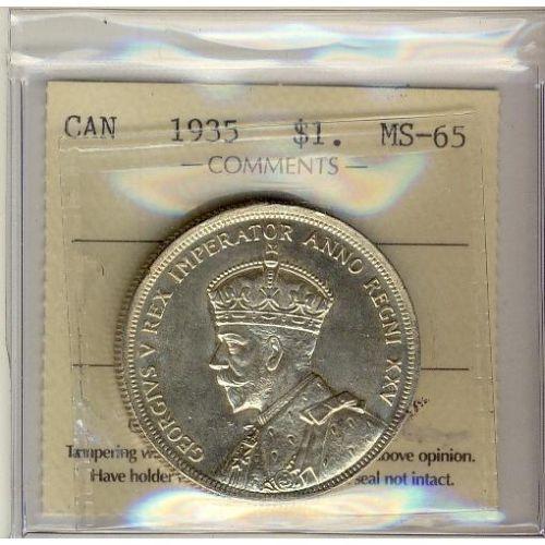 1935 $1 ICCS MS65, a Gem full white example.