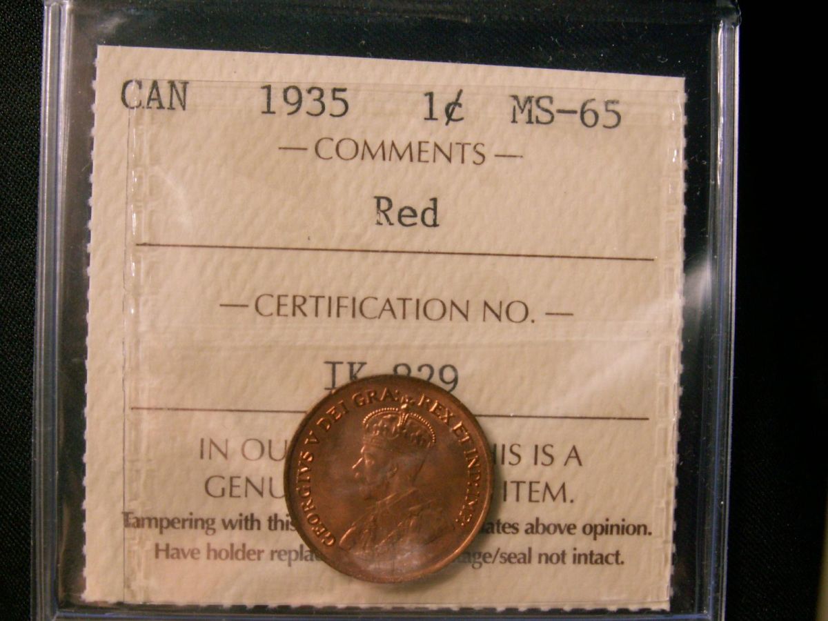 1935 1¢ ICCS MS65RD. 85% red with lustre.