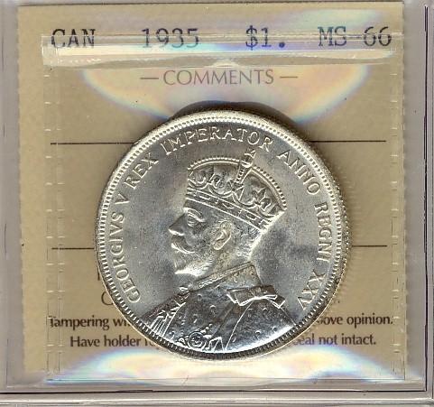 1935 $1 ICCS MS66. PQ example with spectacular eye appeal.