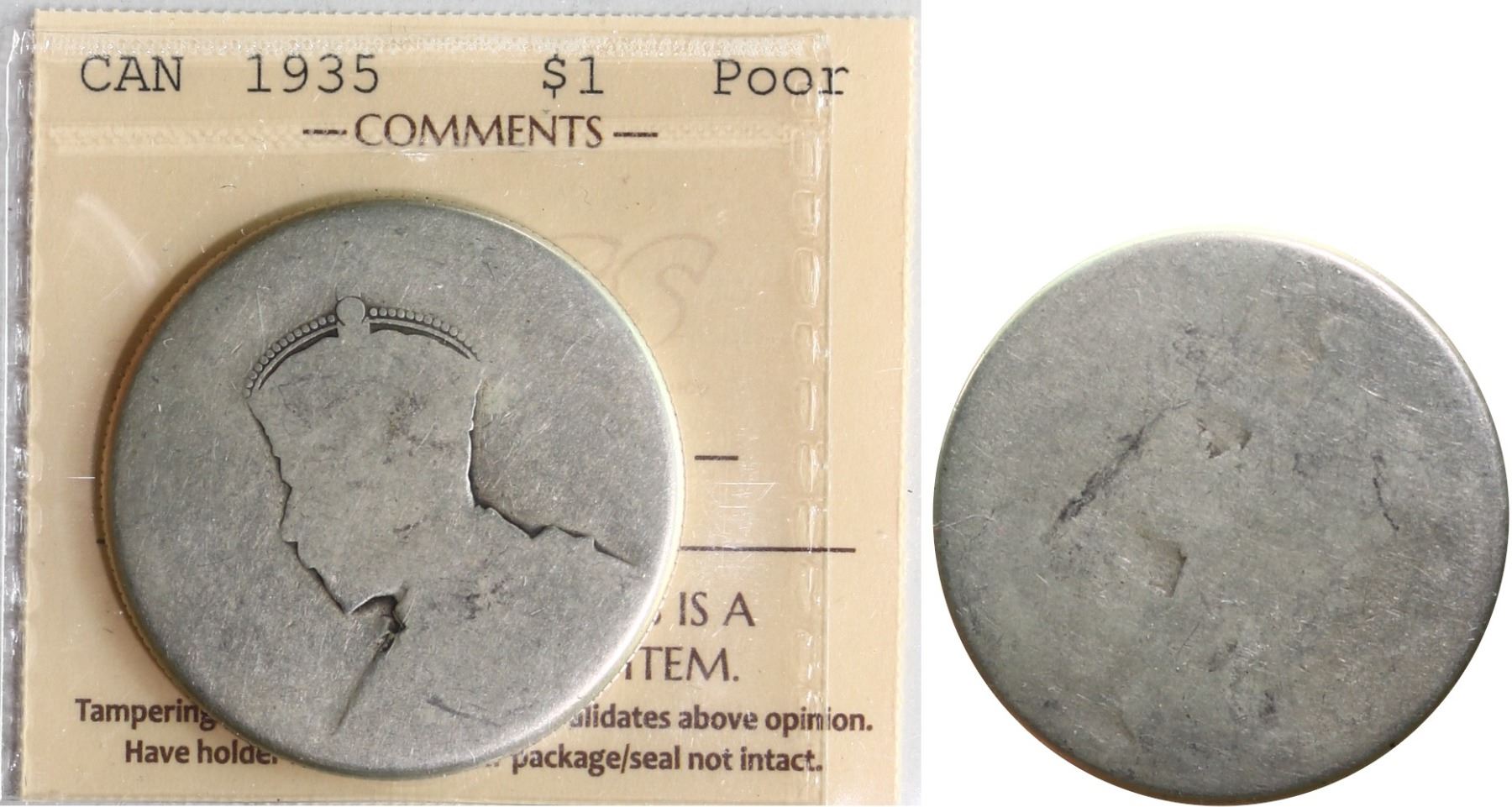 1935 $1 ICCS Poor. Low grade example often sought after by collectors.