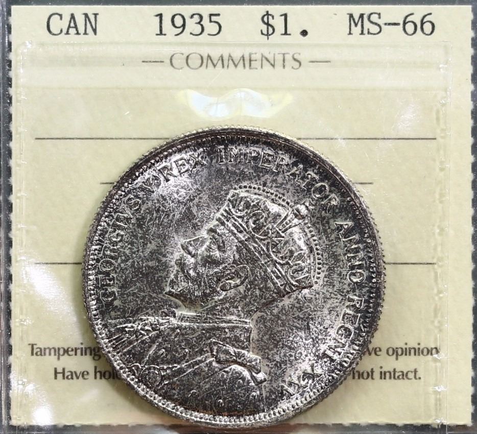 1935 $1 ICCS Superb Gem Mint State-66. Superb appealing gem example w/fully lustrous fields under varying intensities of tattered silvers and reds. Pleasing to the eye.