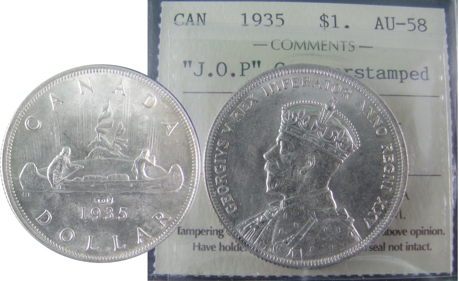 1935 $1 J.O.P. Counter Stamp ICCS AU58.
