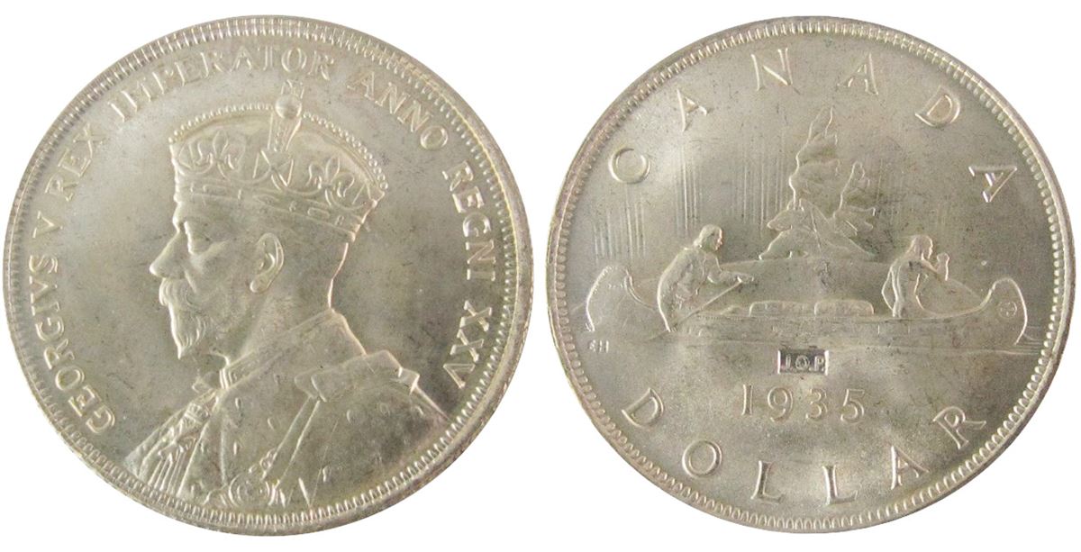 1935 $1 J.O.P. Counterstamp, ICCS MS66. Gem Strong lustrous and white issue. Only known issue in MS66 grade. Rare this nice. Expect strong bidding.