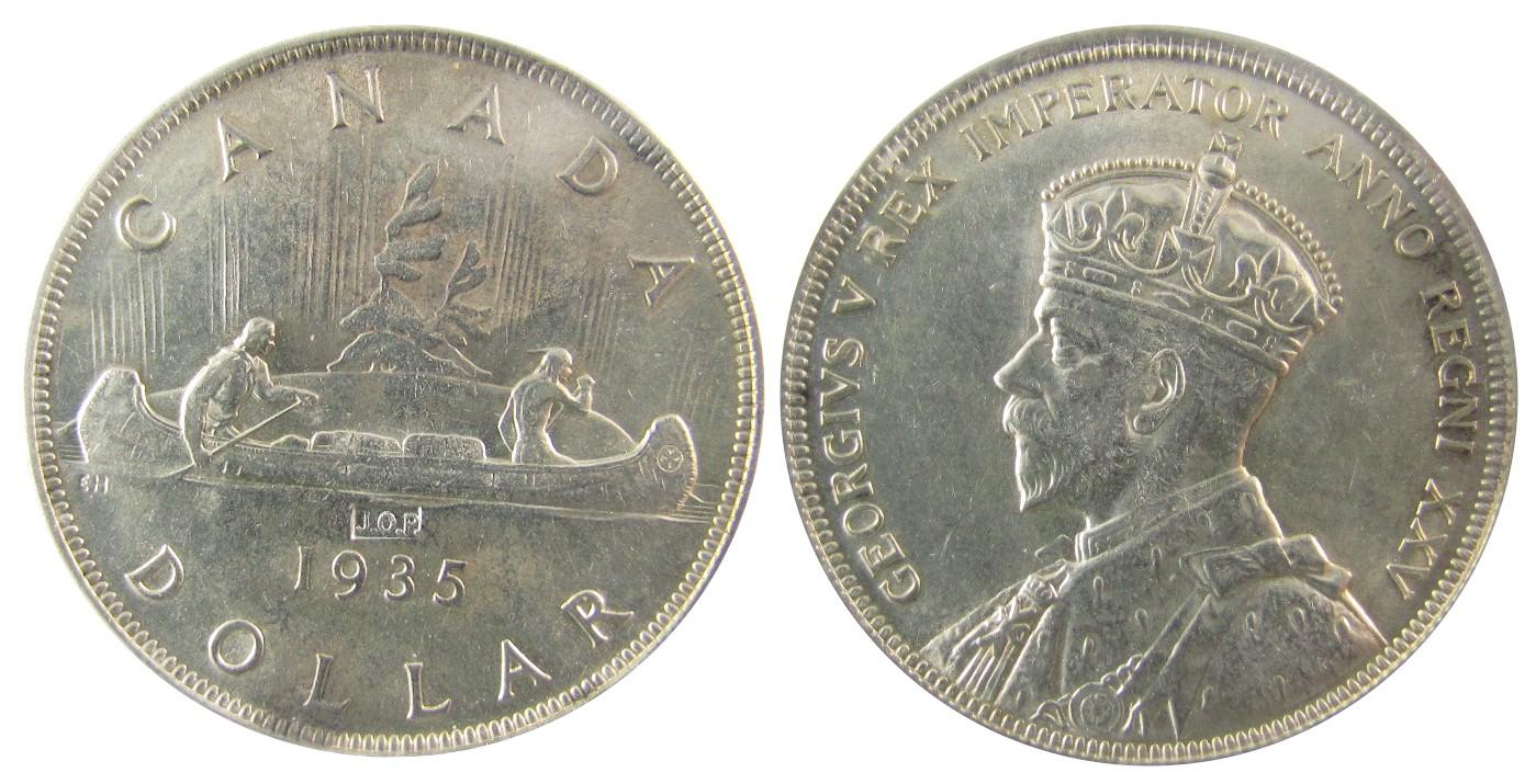1935 $1 J.O.P. ICCS AU50. Attractive Counterstamped issue.