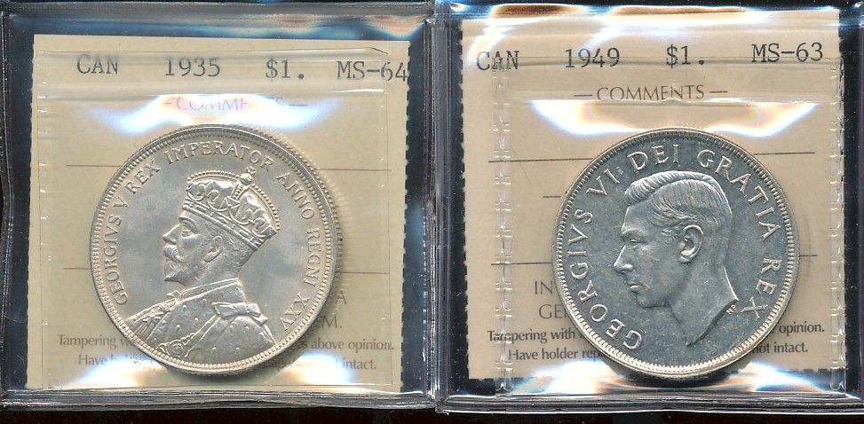 1935 $1 MS64 & 1949 MS63. Lot of 2 ICCS coins.