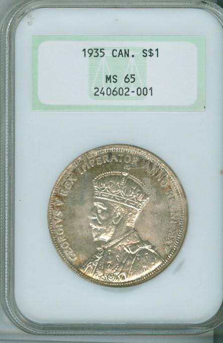 1935 $1 NGC MS65. A gem example with lustre and white in colour and light rim tone.