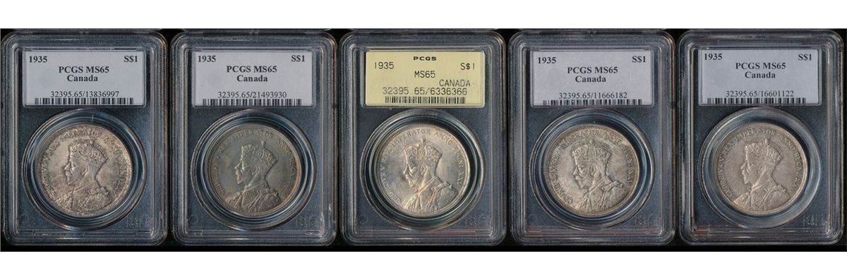 1935 $1 PCGS MS65. Lot of 5 pcs all Gem issues some toned.