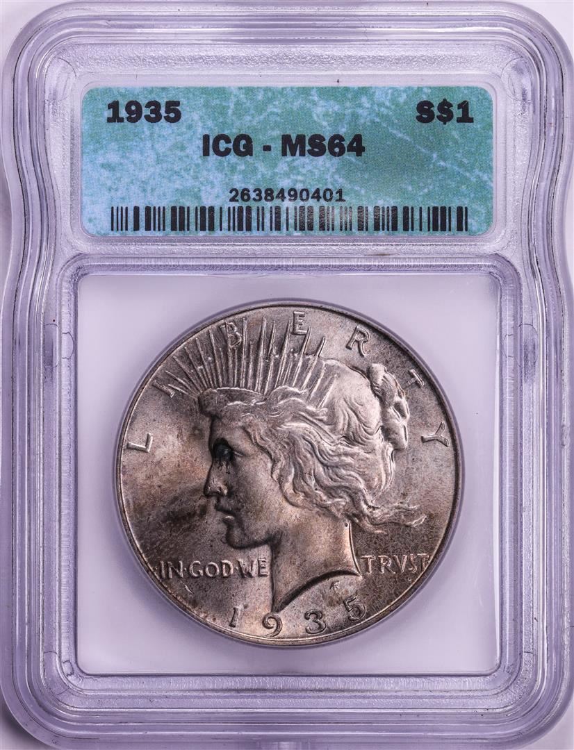 One 1935 $1 Peace Silver Dollar Coin ICG MS64.