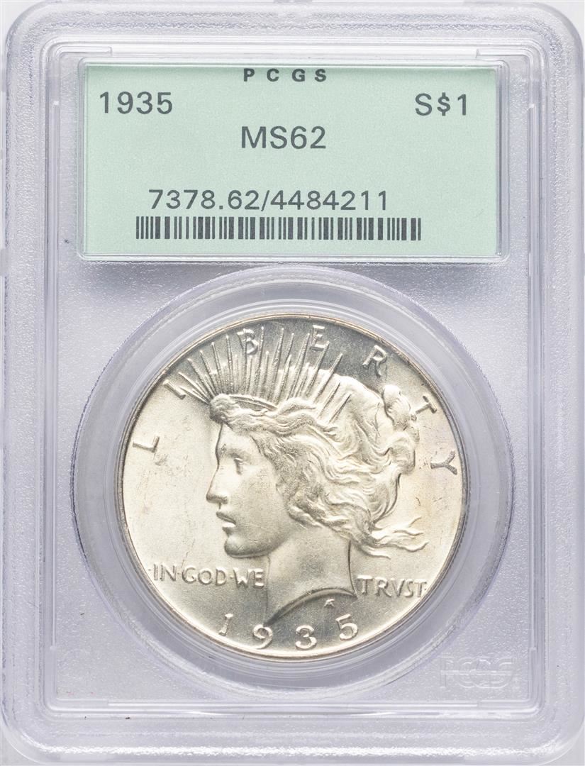 One 1935 $1 Peace Silver Dollar Coin PCGS MS62. PCGS Graded.