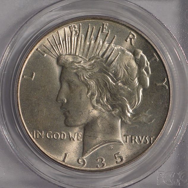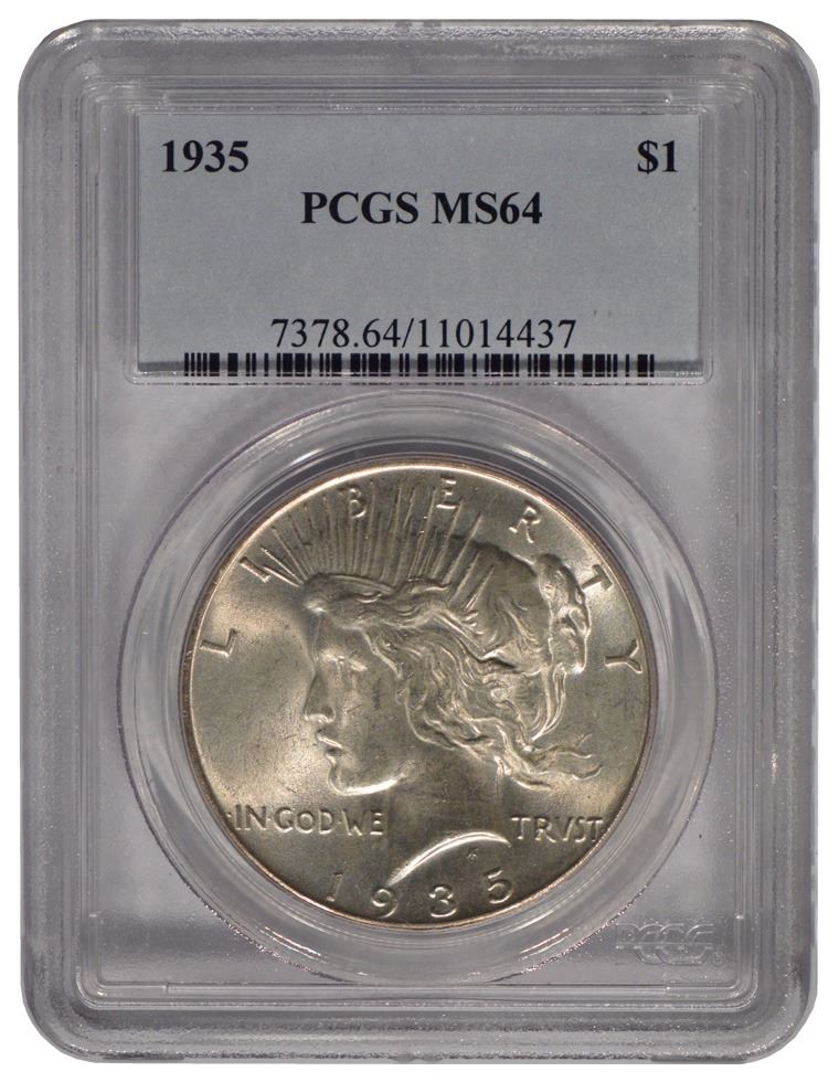 One 1935 $1 Peace Silver Dollar Coin PCGS MS64.