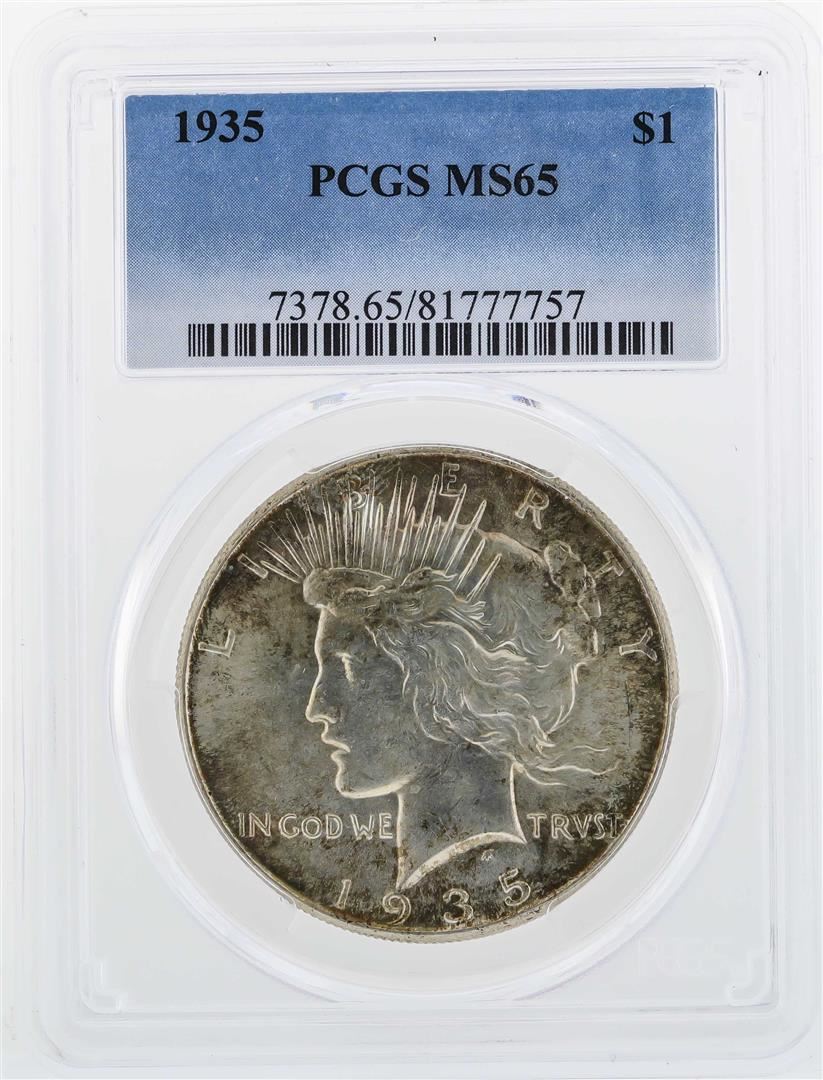 One 1935 $1 Peace Silver Dollar Coin PCGS MS65. PCGS Graded.