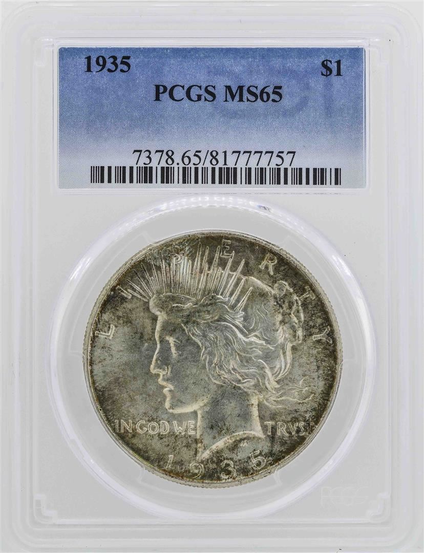One 1935 $1 Peace Silver Dollar Coin PCGS MS65. PCGS Graded.