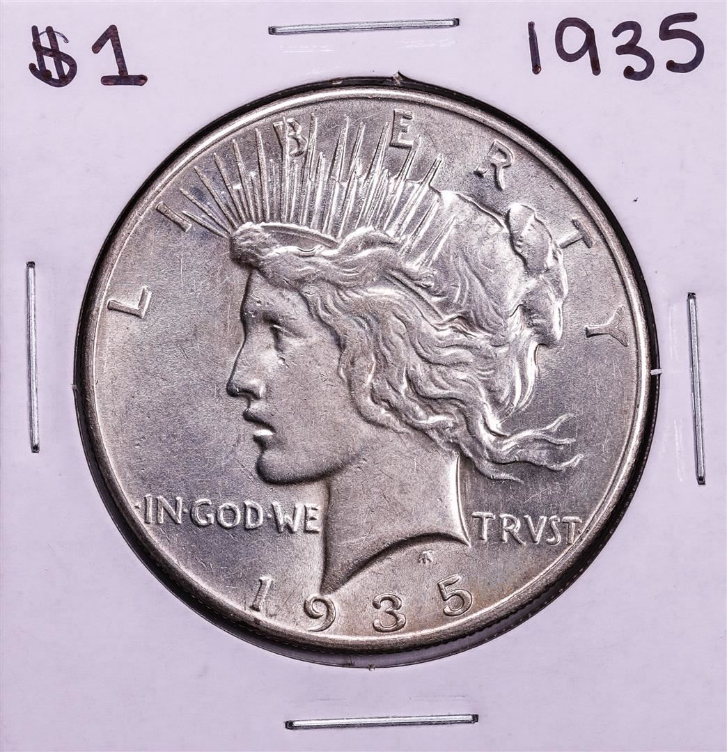 One 1935 $1 Peace Silver Dollar Coin.