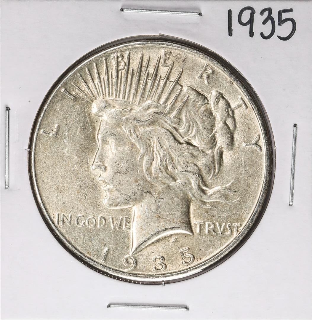 One 1935 $1 Peace Silver Dollar Coin.