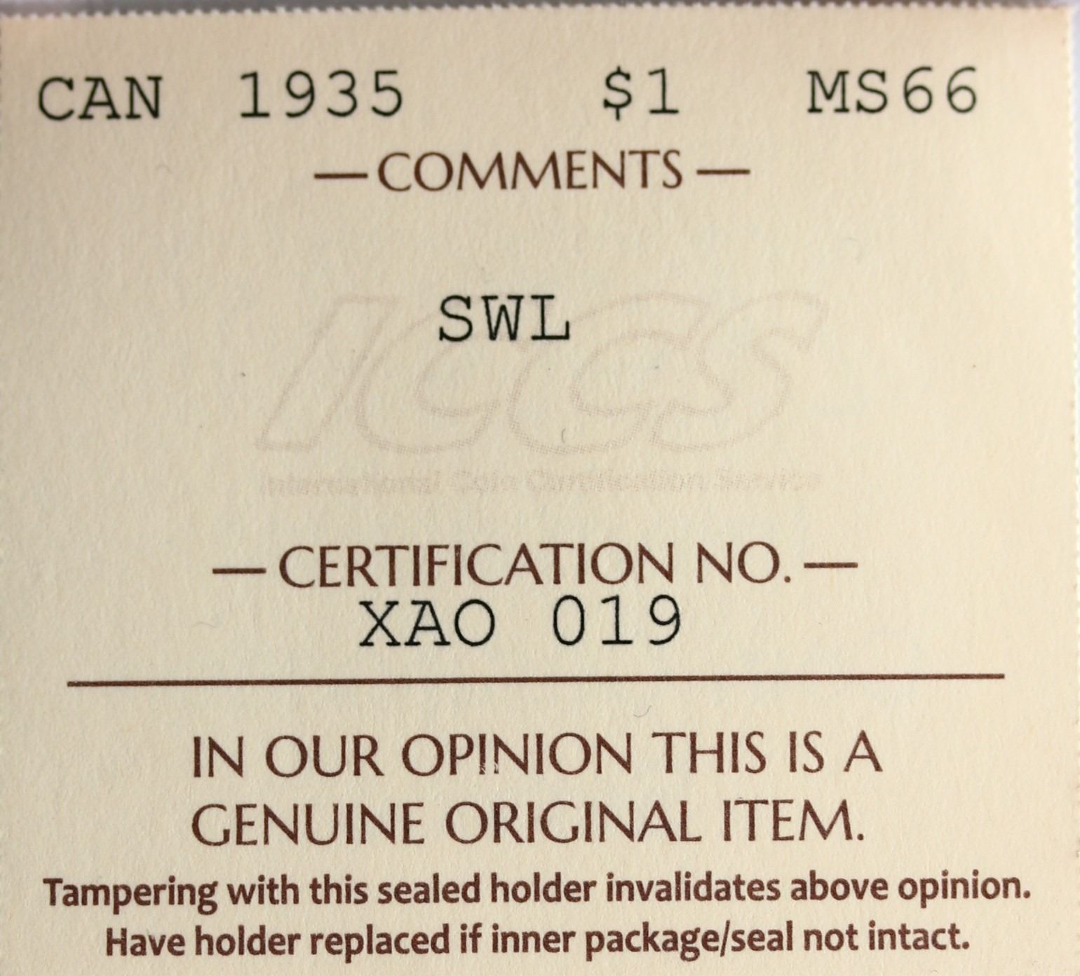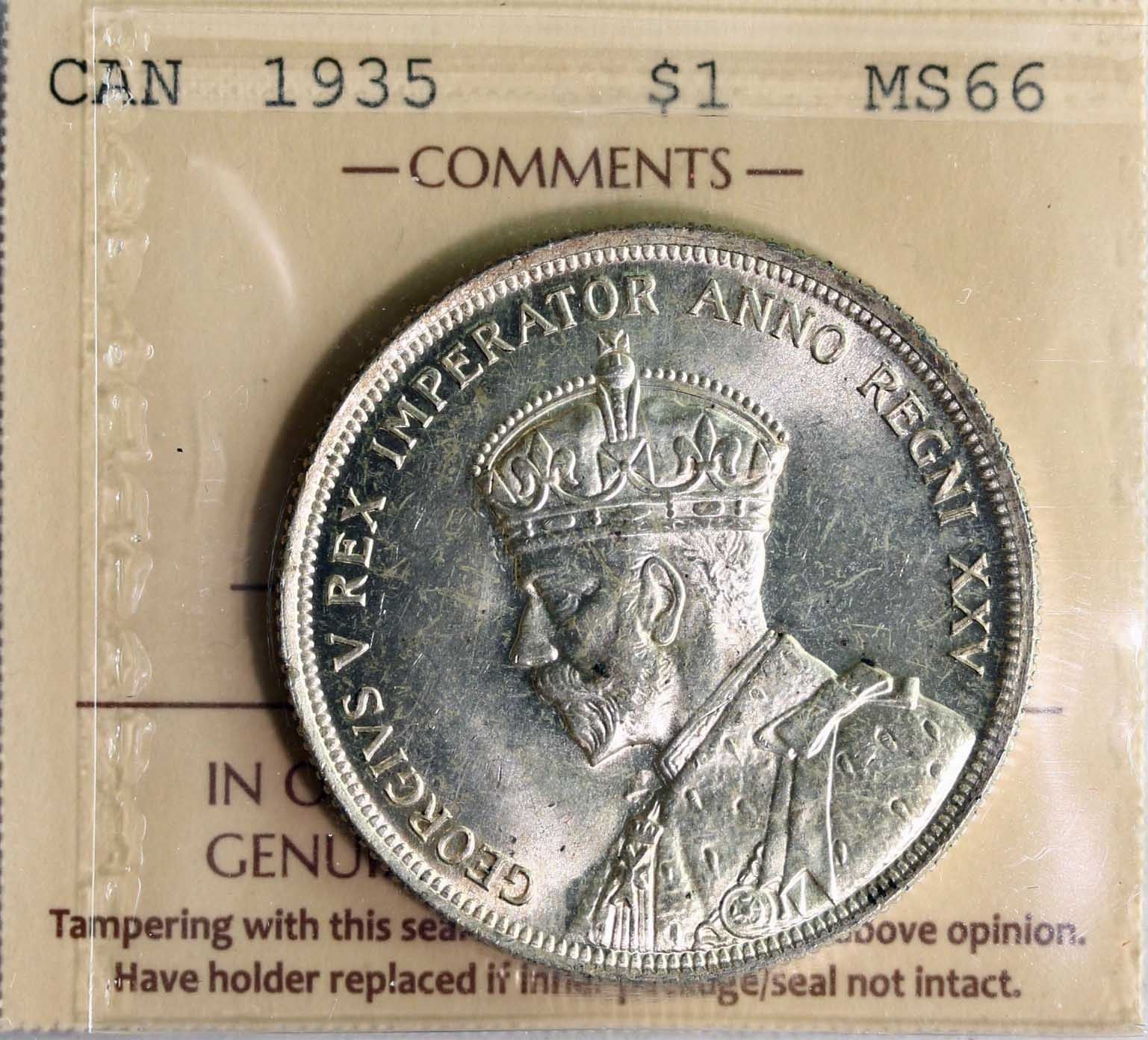 1935 $1 "SWL" ICCS Superb Gem Mint State-66, Fully brilliant and lustrous.