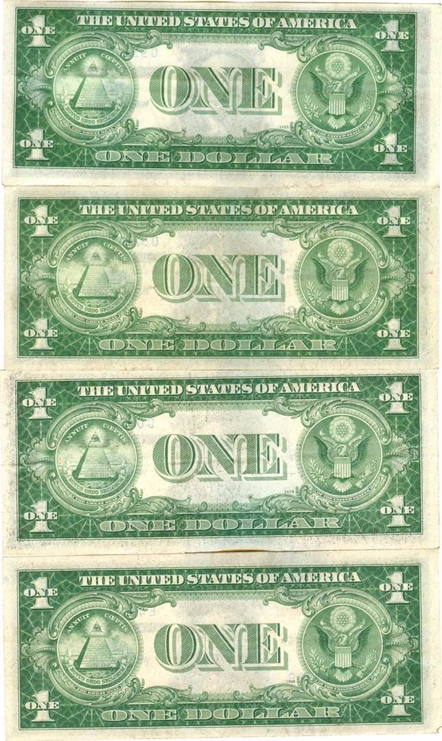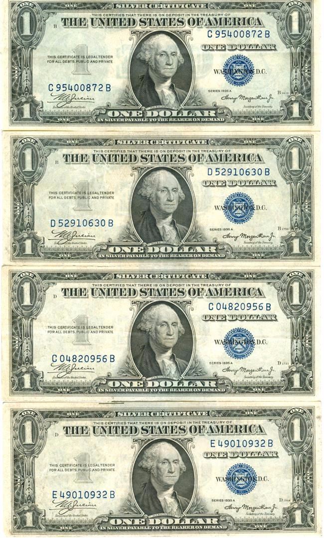 1935 $1 Silver Certificate Lot of 4 Assorted Bills. Pictures represent the bills.