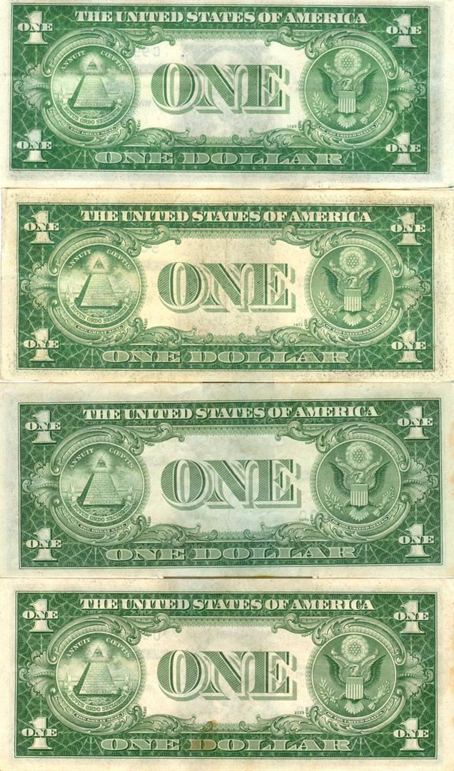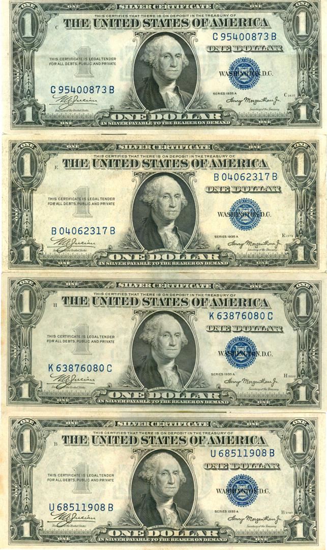 1935 $1 Silver Certificate Lot of 4 Assorted Bills. Pictures represent the bills.