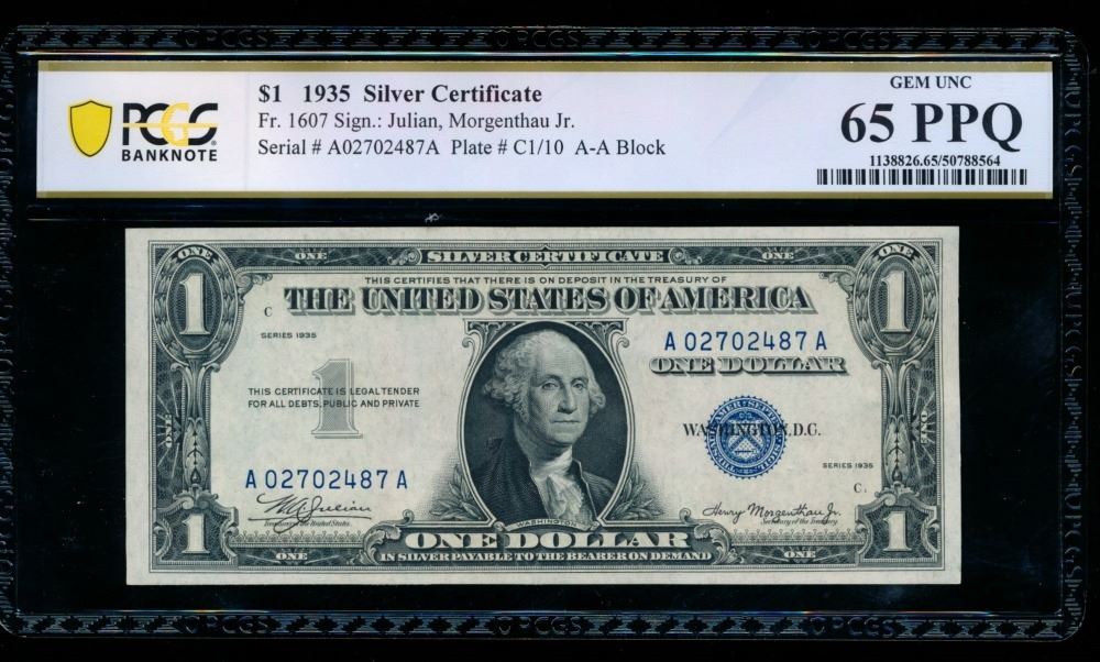 One 1935 $1 Silver Certificate PCGS 65PPQ.