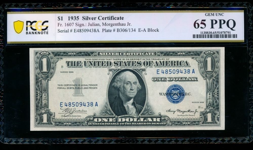 One 1935 $1 Silver Certificate PCGS 65PPQ.