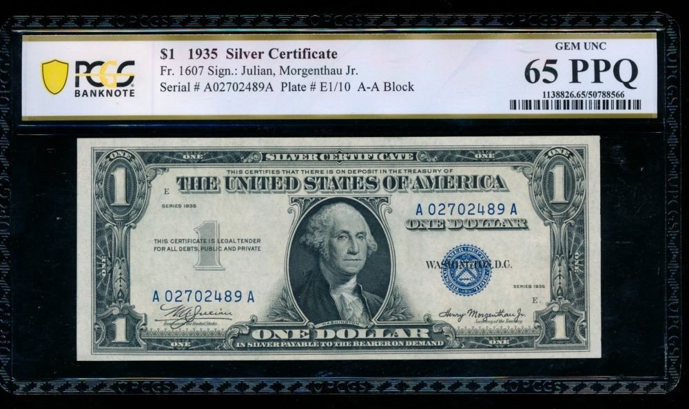 One 1935 $1 Silver Certificate PCGS 65PPQ.
