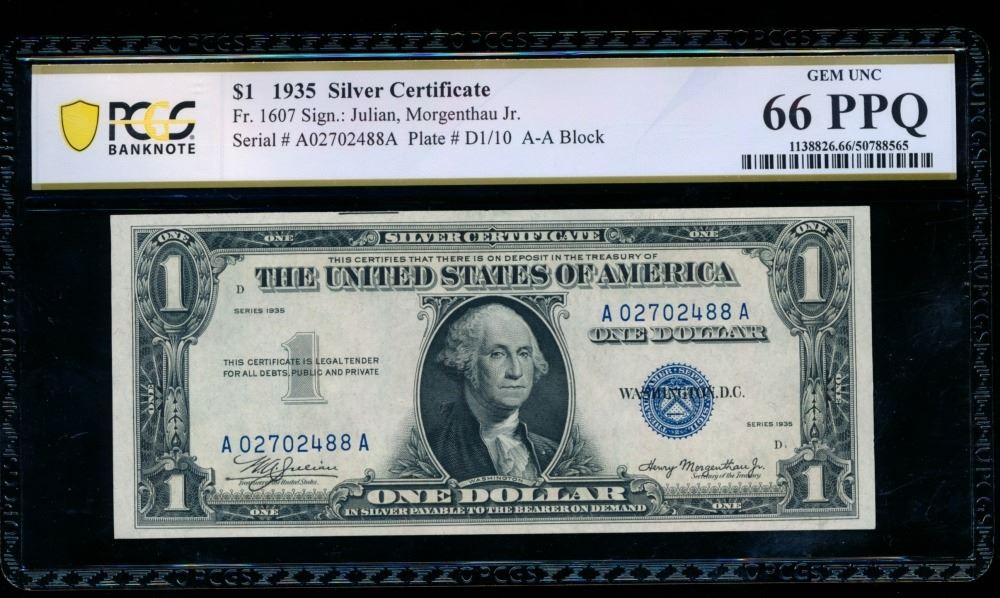 One 1935 $1 Silver Certificate PCGS 66PPQ.