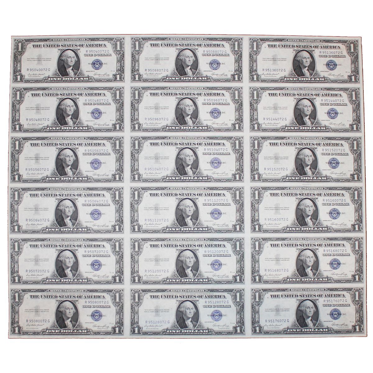 Uncut Sheet of $1 Silver Certificates -- Series 1935 -- Near Fine