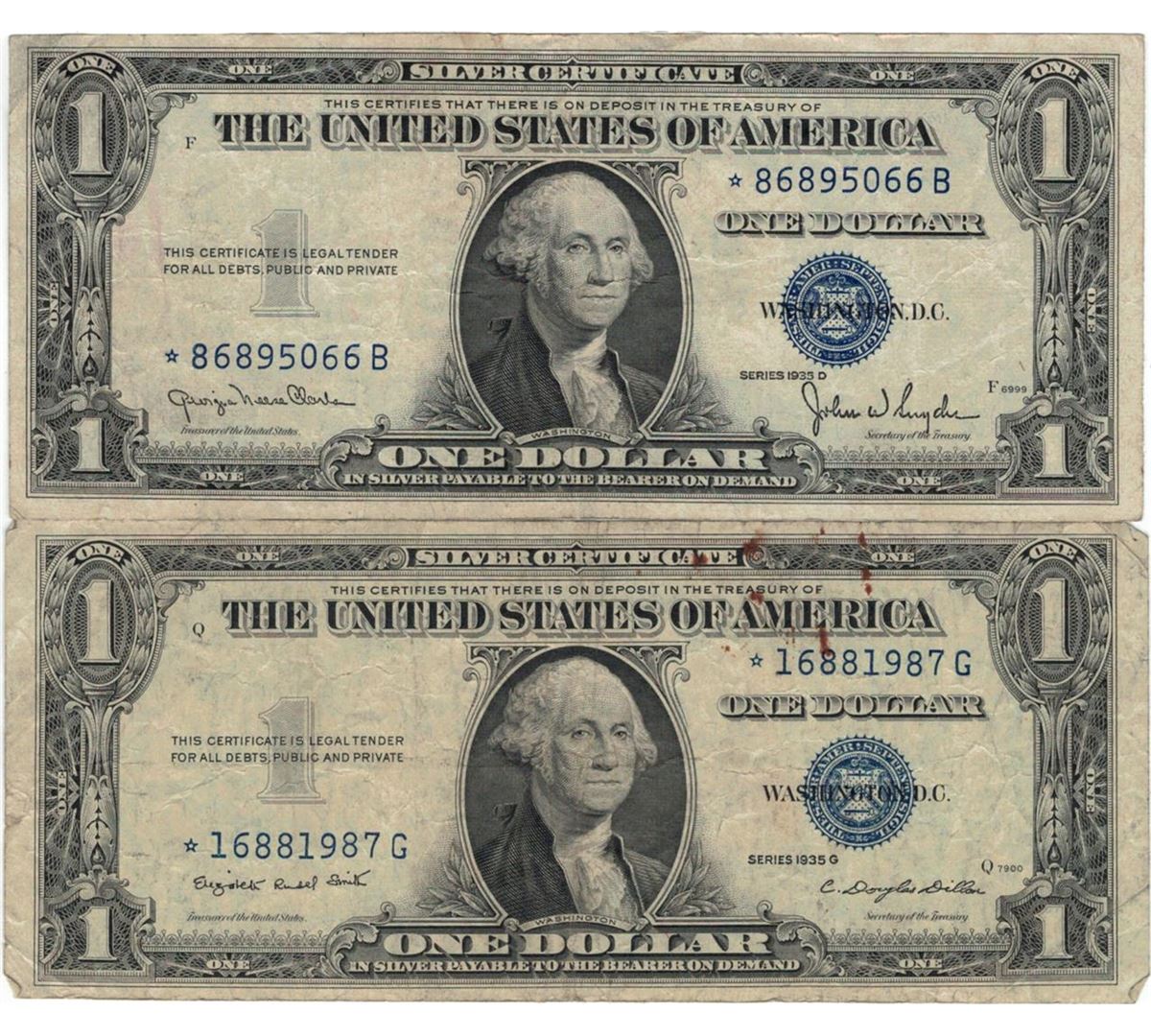 1935 $1 Star Note Silver Certificate Currency Lot of 2.