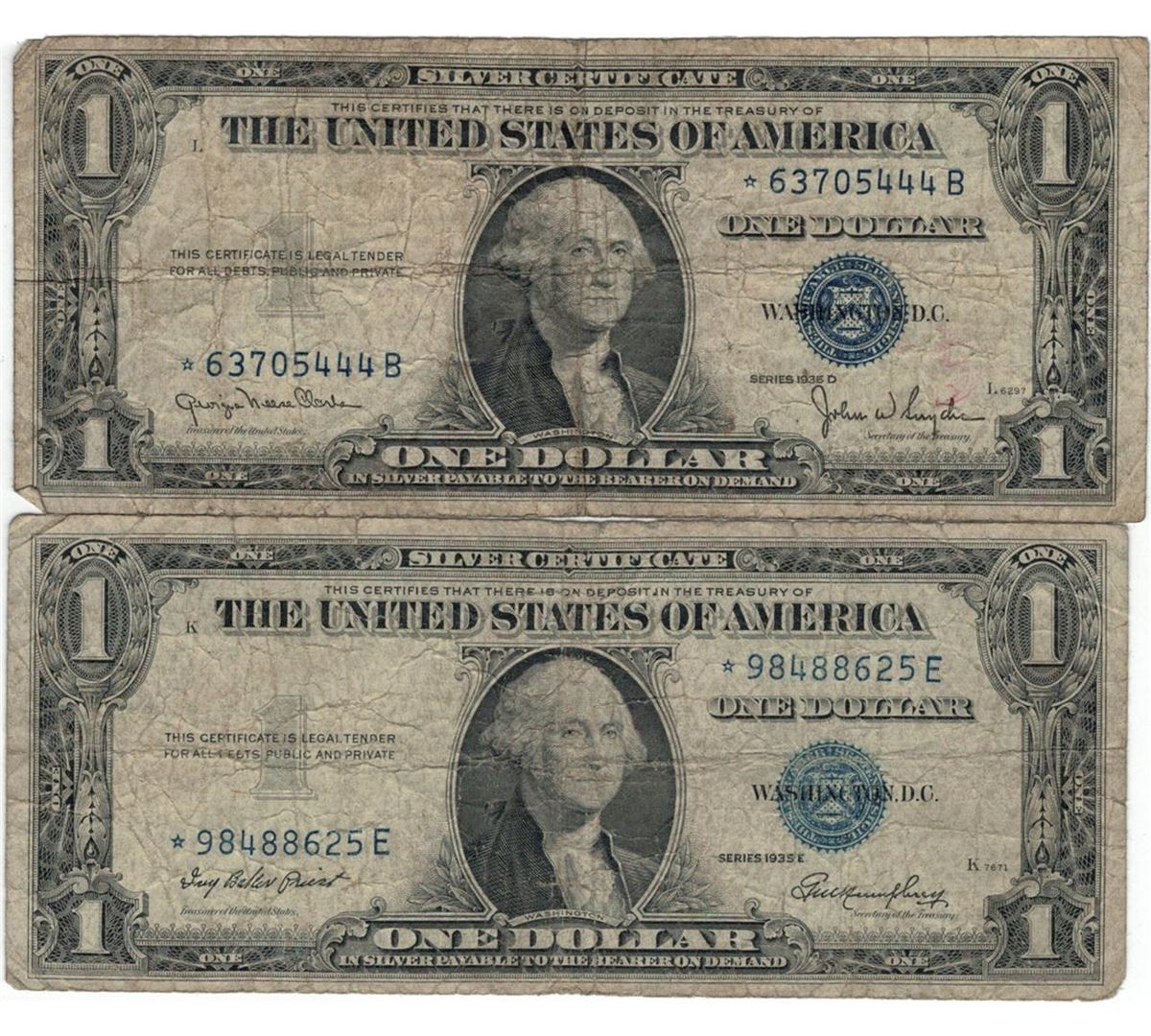 1935 $1 Star Note Silver Certificate Currency Lot of 2.