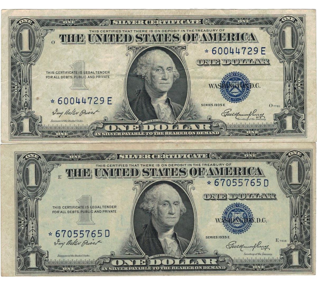 1935 $1 Star Note Silver Certificate Currency Lot of 2.