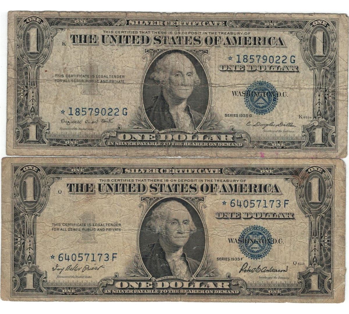 1935 $1 Star Note Silver Certificate Currency Lot of 2.
