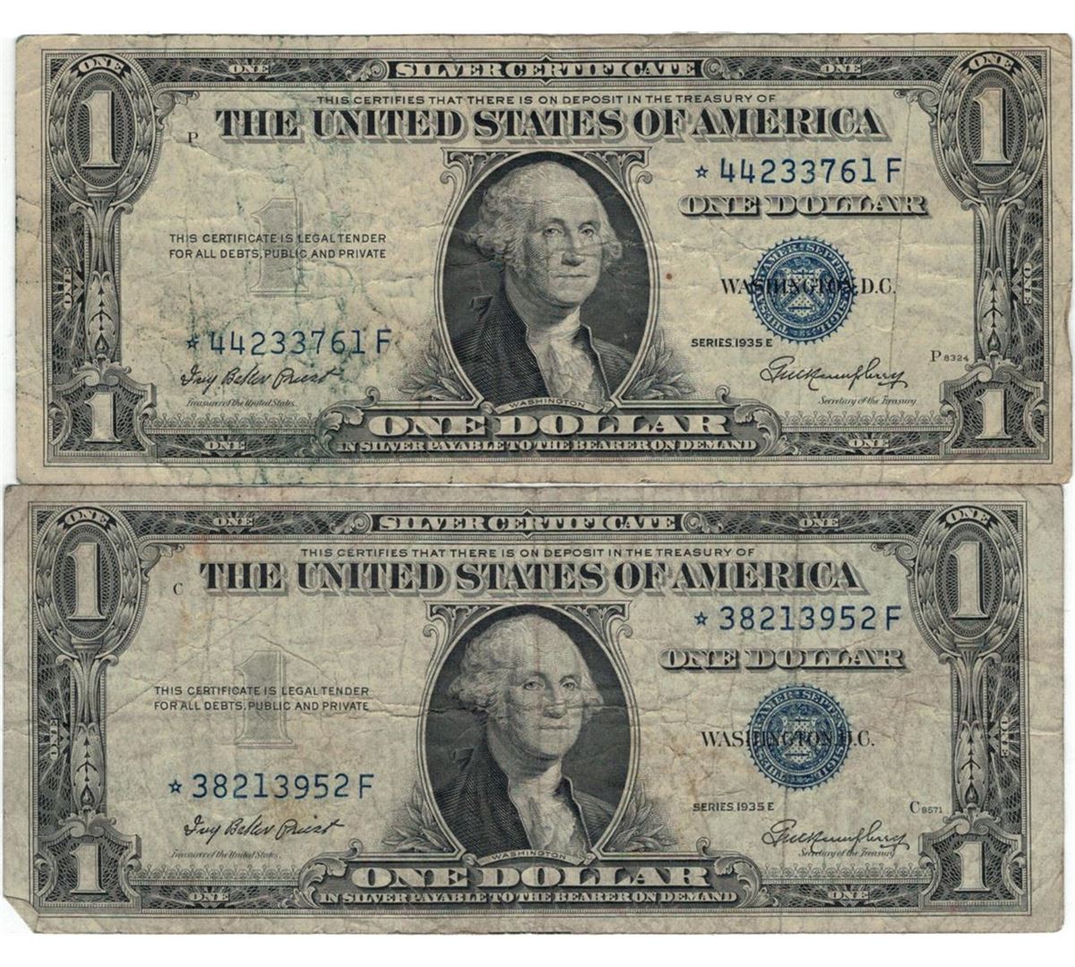1935 $1 Star Note Silver Certificate Currency Lot of 2.