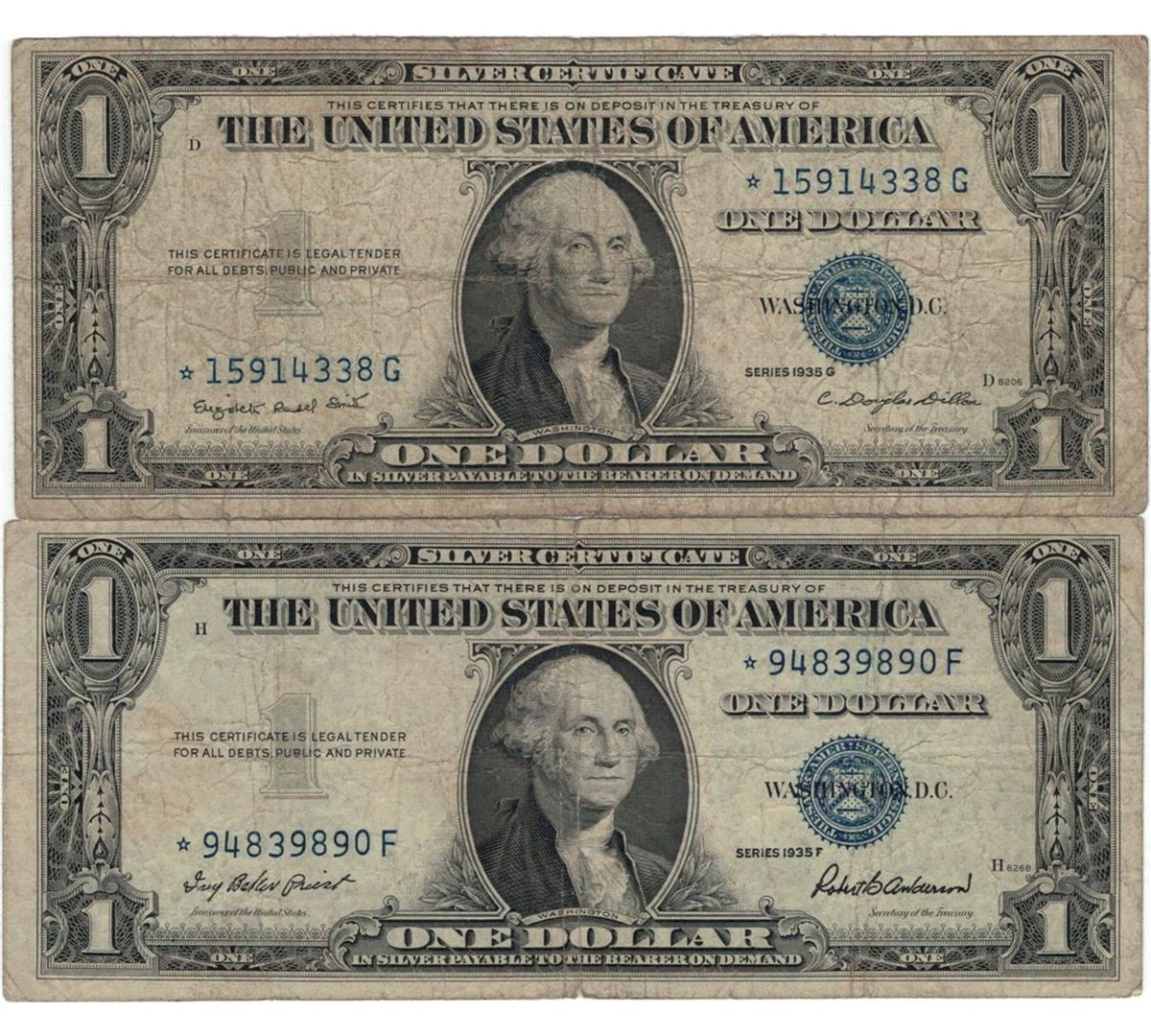 1935 $1 Star Note Silver Certificate Currency Lot of 2.