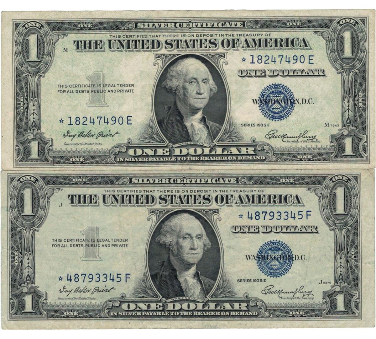 1935 $1 Star Note Silver Certificate Currency Lot of 2.