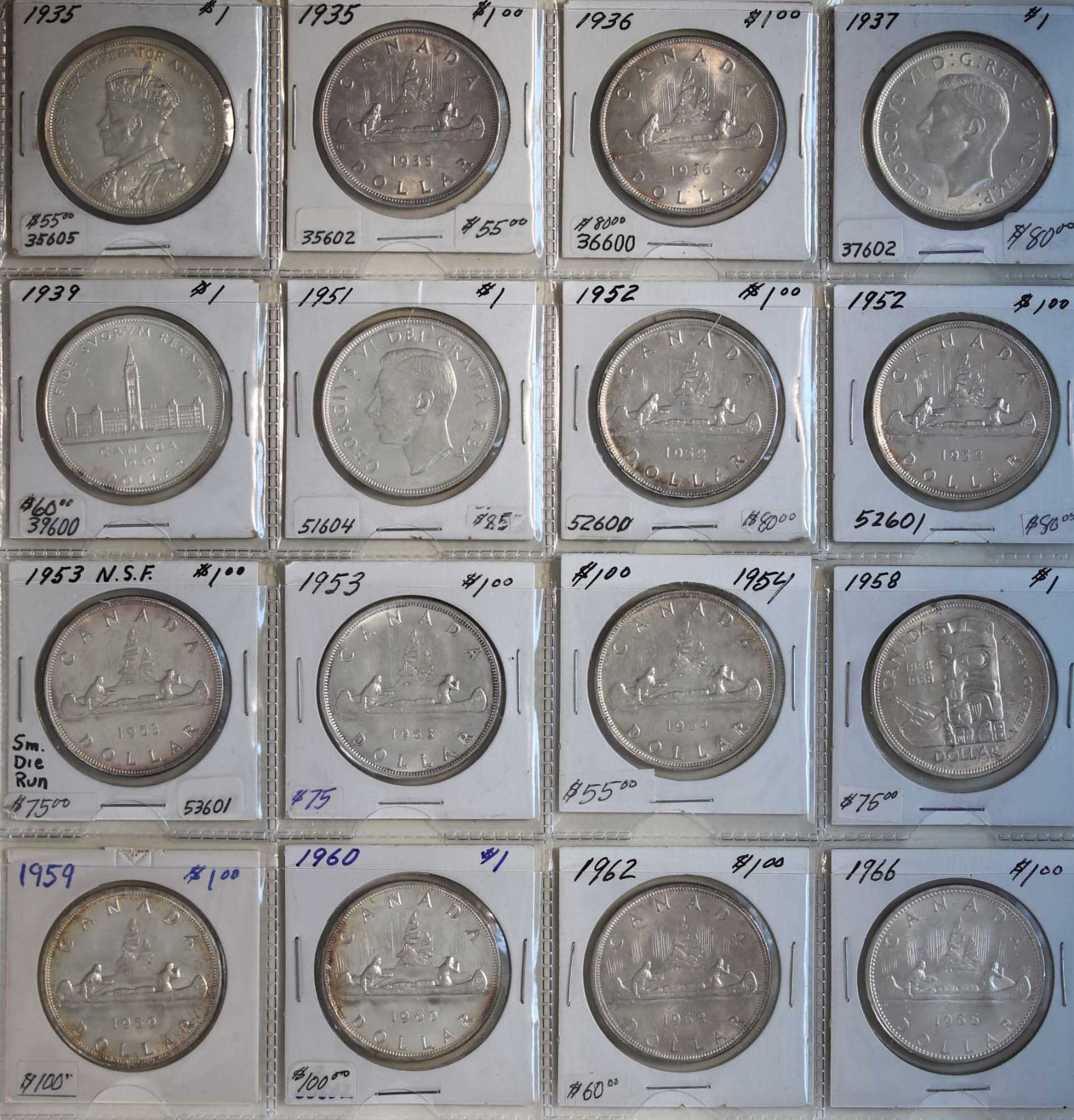 1935 $1 to 1966. Lot of 16 coins EF to UNC.