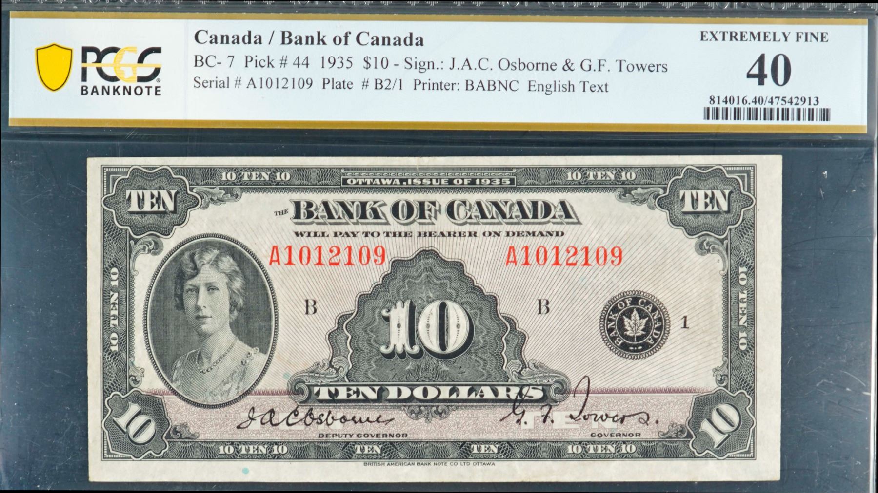 1935 $10 BC-7 #A1012109 PCGS Extra Fine-40. A very nice and bright example.