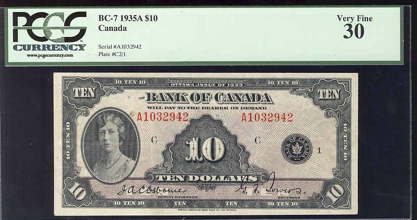 1935 $10 BC-7 #A1032942 PCGS VF30.