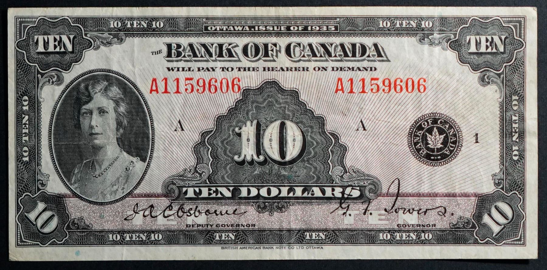 1935 $10 BC-7 #A1159606, Solid VF example.