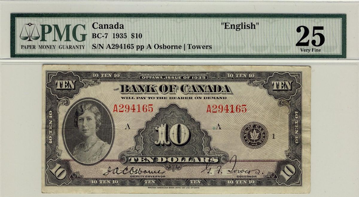 1935 $10 BC-7 #A294165 PMG VF25