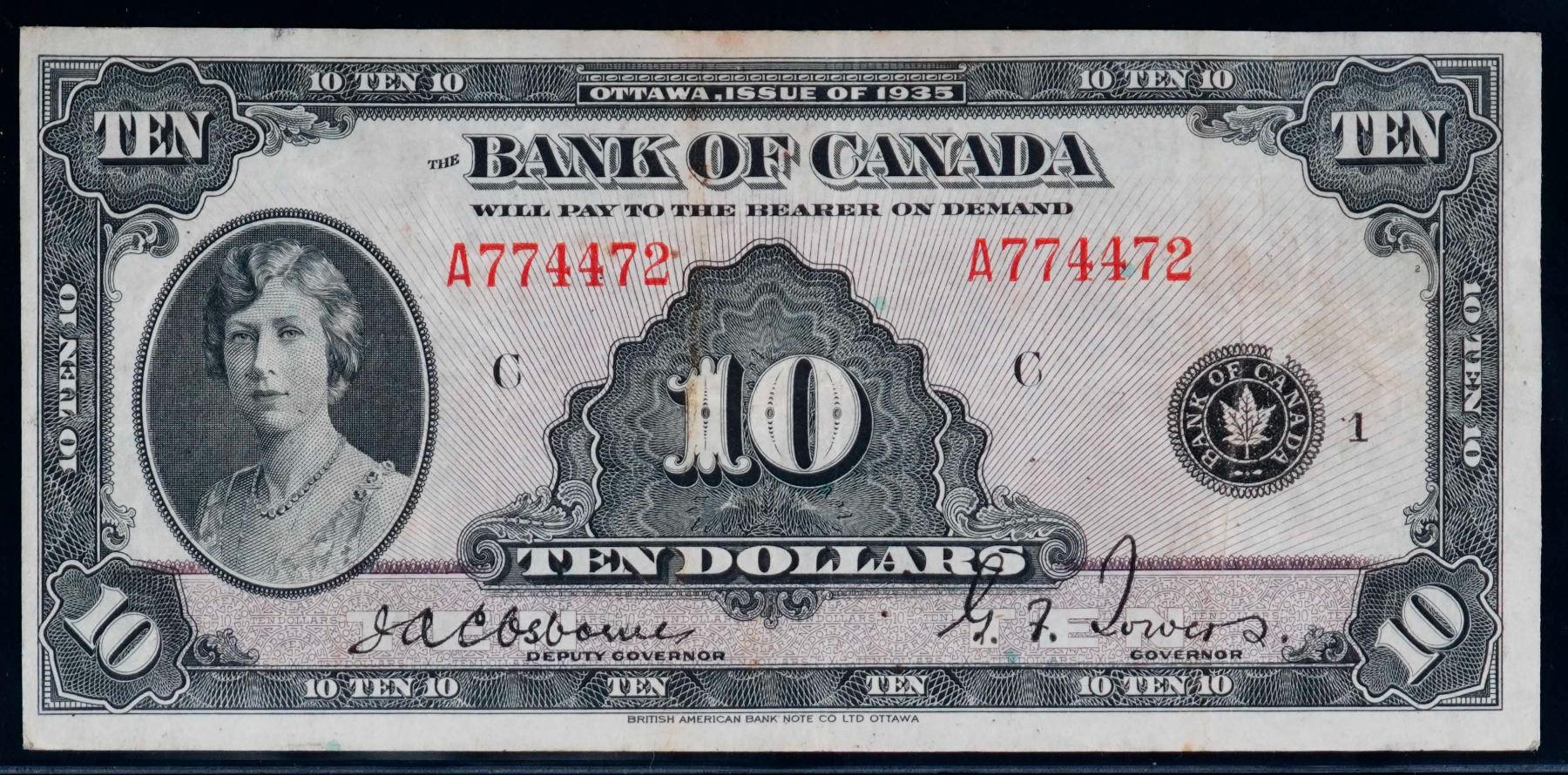 1935 $10 BC-7 #A774472 VF or better. A bright example.