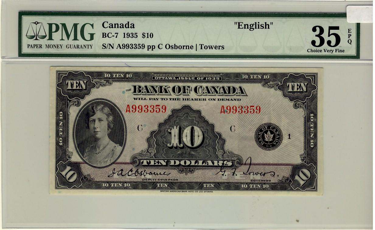 1935 $10 BC-7 #A993359, PMG VF35EPQ.